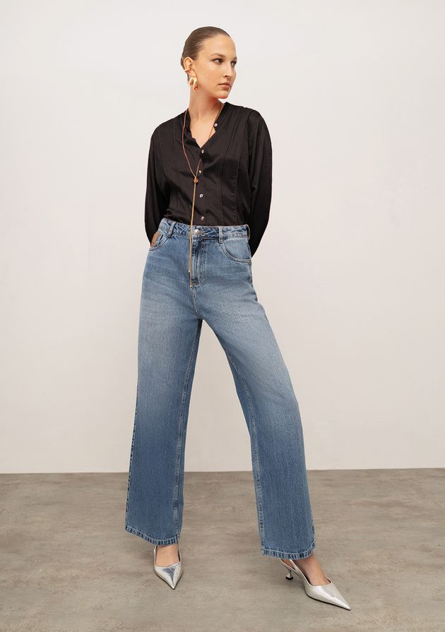 Calça Iódice Reta Alta Azul