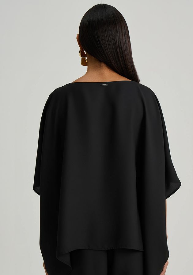 Blusa Iódice Solta Decote Careca Manga Curta Padrão Preto