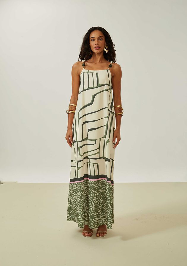Vestido Maria.Valentina Solto Decote V Com Alça Longo Verde