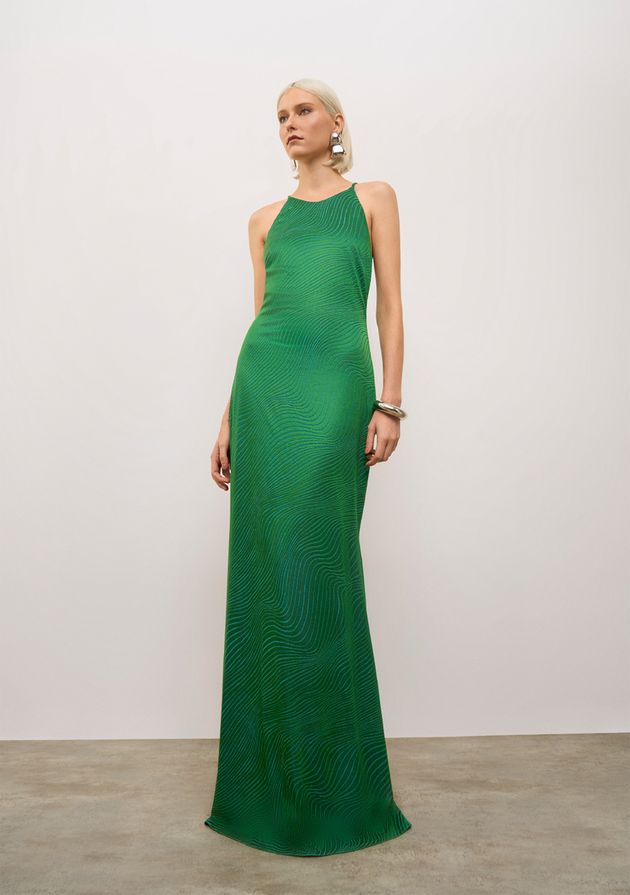 Vestido Iódice Ajustado Decote Careca Com Alça Longo Verde