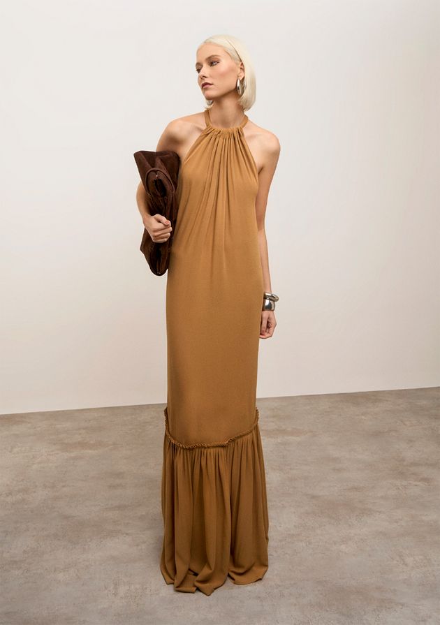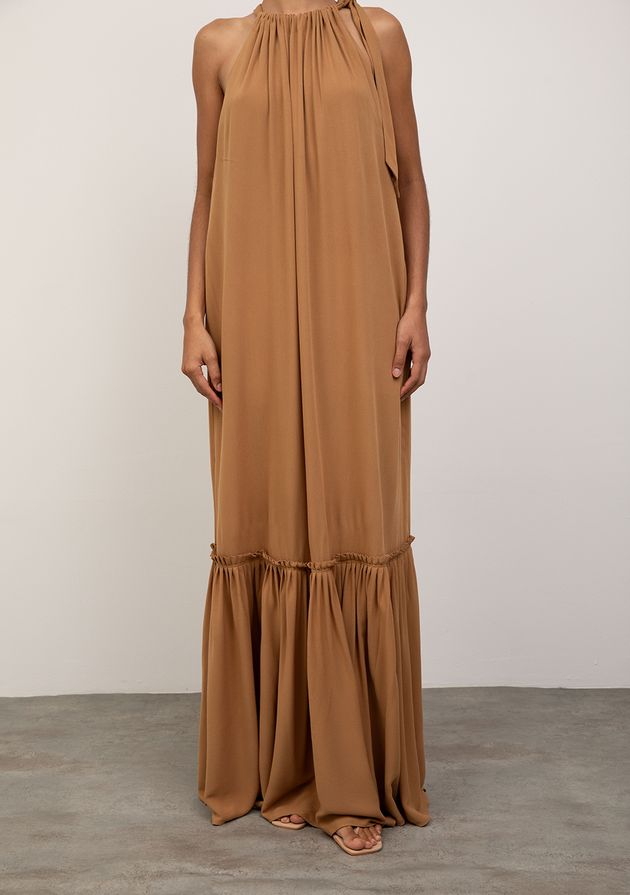 Vestido Maria.Valentina Ajustado Decote Careca Sem Manga Longo Marrom