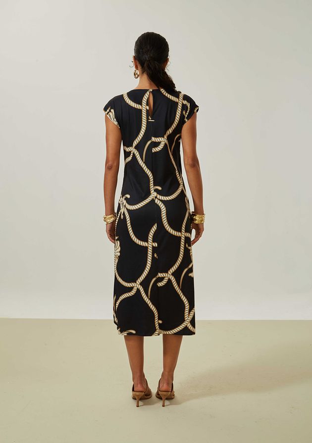 Vestido Maria.Valentina Solto Decote Careca Manga Curta Midi Preto