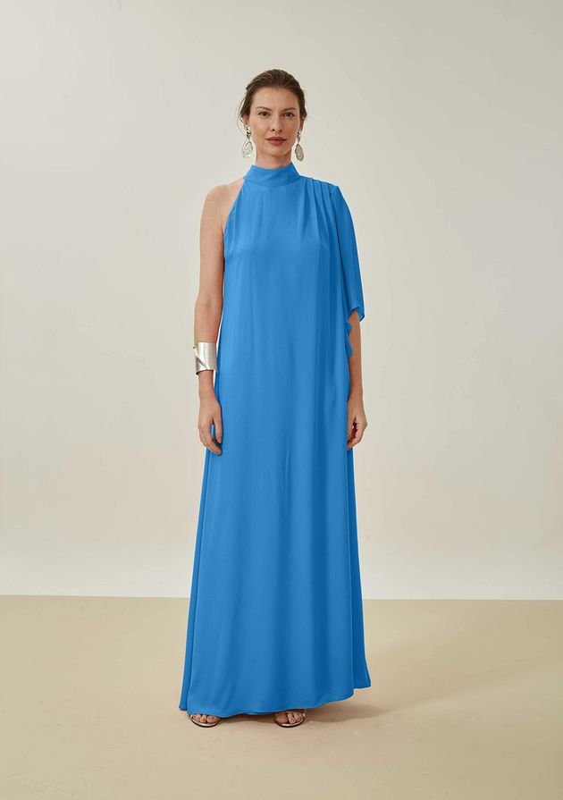 Vestido Maria.Valentina Solto Um Ombro Só Sem Manga Longo Azul