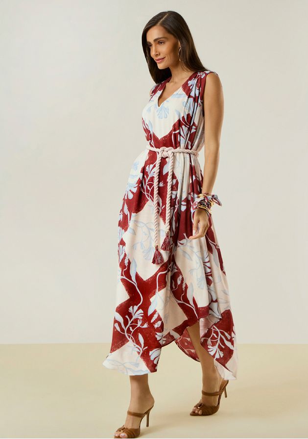 Vestido Iódice Ajustado Decote V Sem Manga Curto Vermelho