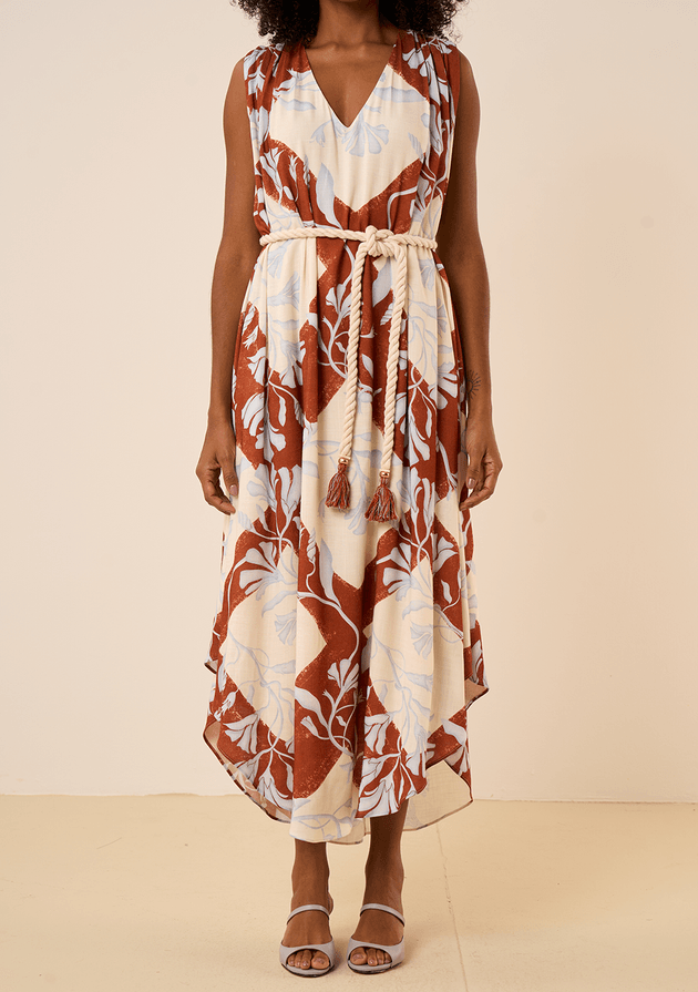 Vestido Maria.Valentina Solto Decote V Sem Manga Longo Marrom
