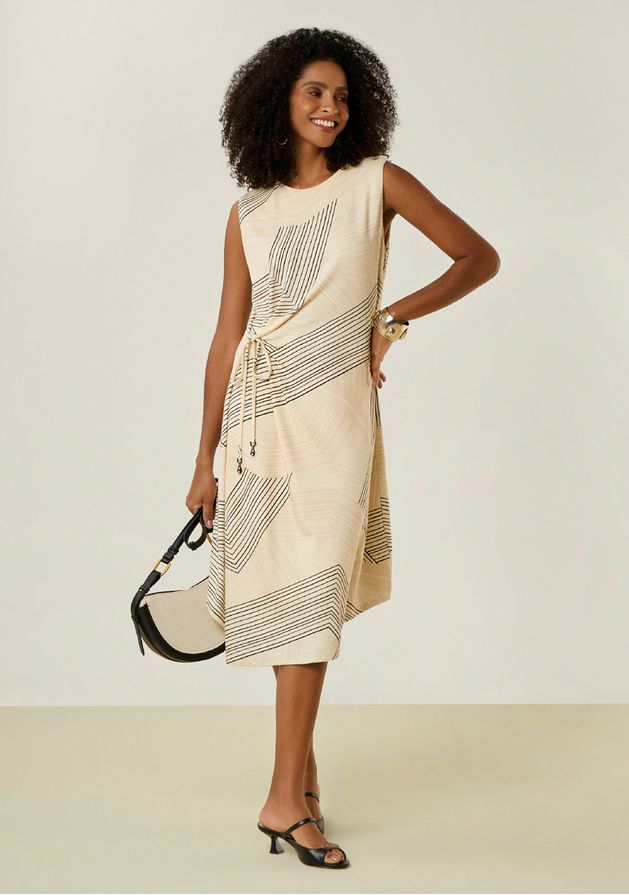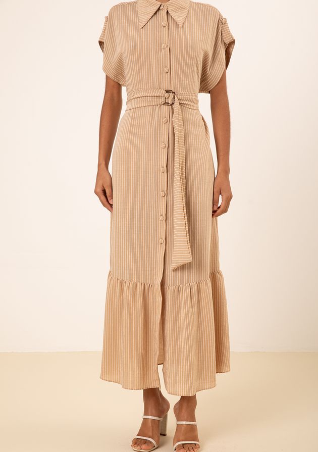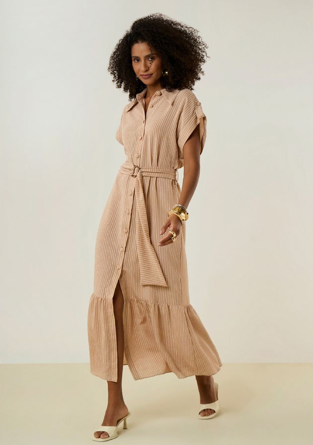 Vestido Iódice Solto Decote Careca Manga Curta Longo Marrom