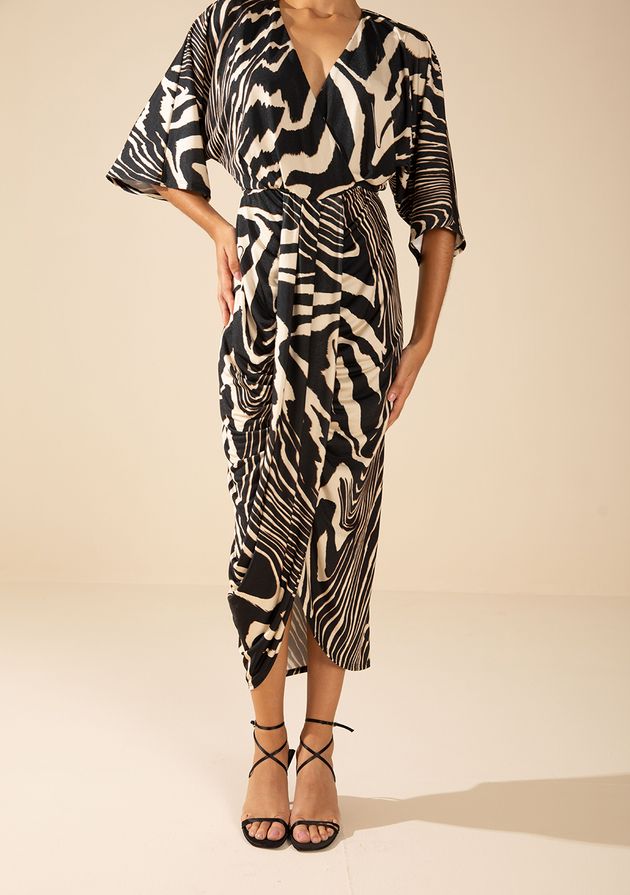 Vestido Maria.Valentina Solto Decote Transpassado Sem Manga Longo Bege