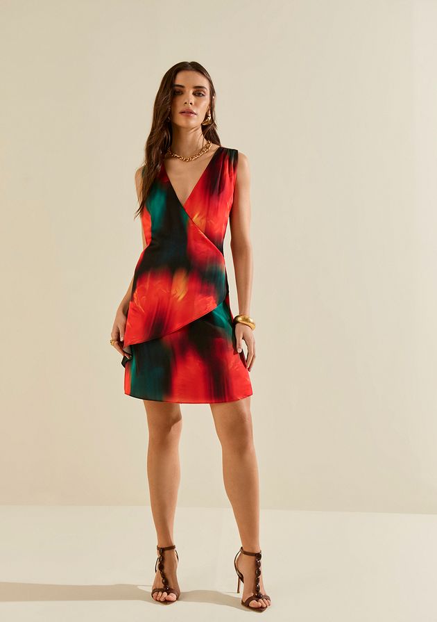 Vestido Morena Rosa Solto Decote V Sem Manga Curto Vermelho