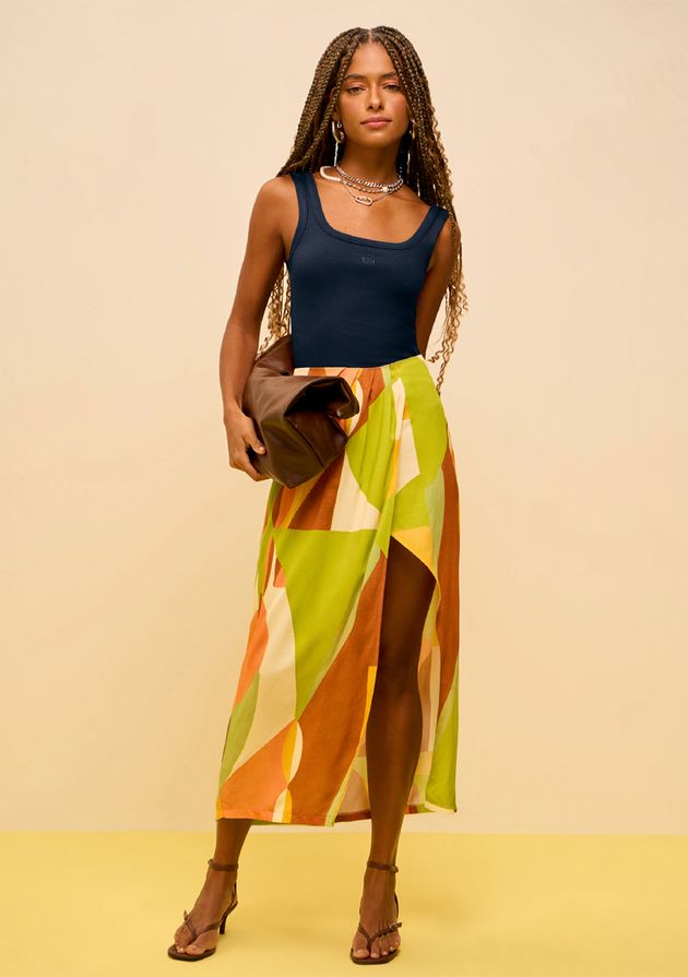 Regata Zinco Solta Decote Quadrado Padrão Roxo