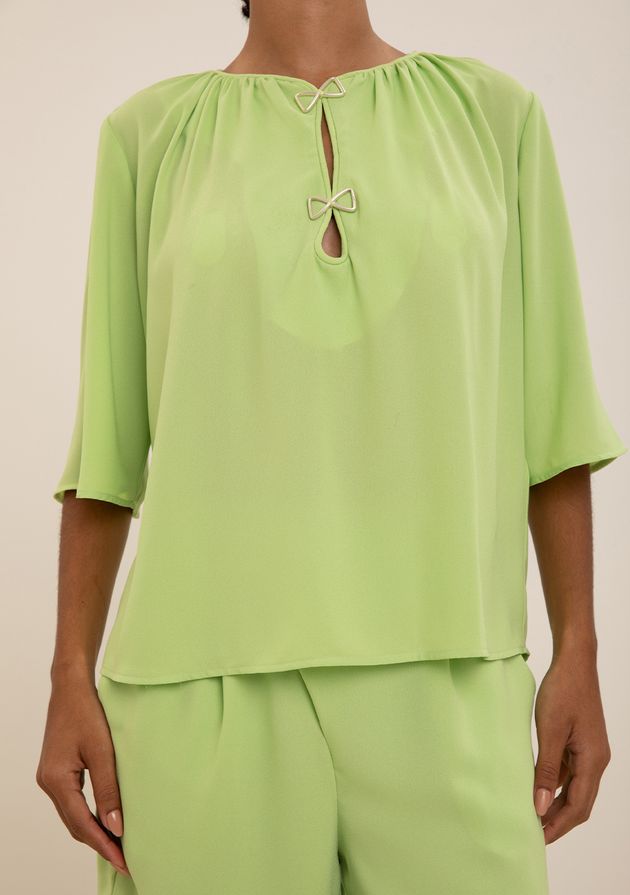 Blusa Maria.Valentina Solta Decote V Manga Curta Padrão Verde