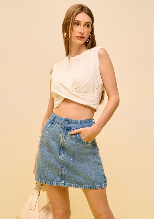 Blusa Zinco Ajustada Decote Careca Manga Curta Cropped Laranja