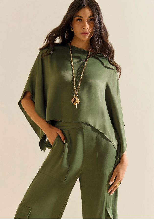 Camisa Morena Rosa Solta Gola Padre Manga Longa Alongada Verde