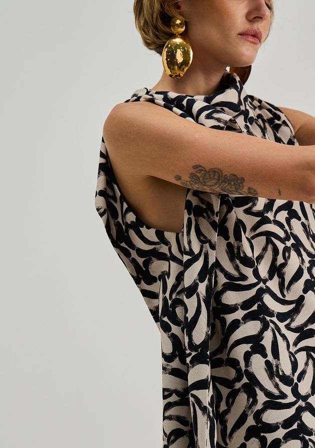 Vestido Iódice Solto Gola Alta Sem Manga Curto Preto