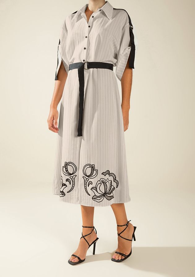 Vestido Maria.Valentina Solto Decote V Manga Curta Midi Off White