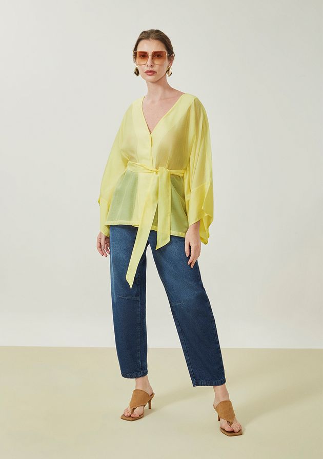 Vestido Morena Rosa Ajustado Decote V Manga Curta Longo Amarelo