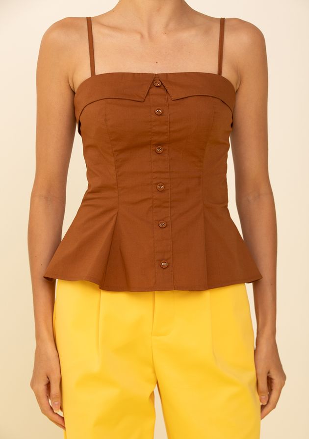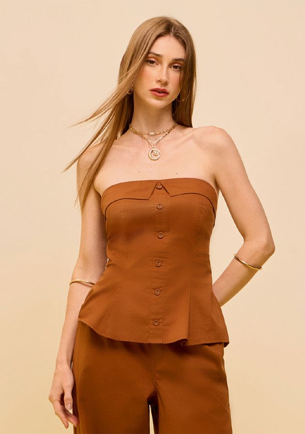 Top Zinco Decote Reto Sem Alça Marrom