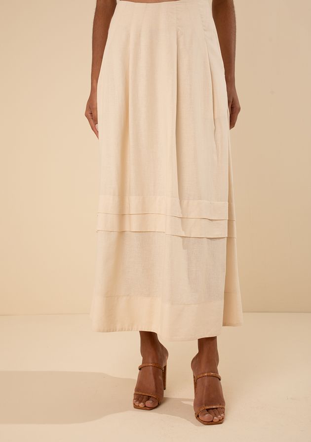 Saia Morena Rosa Evasê Alta Midi Bege