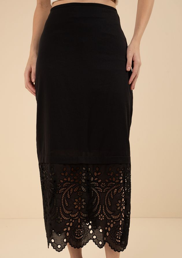 Saia Morena Rosa Reta Alta Midi Preto