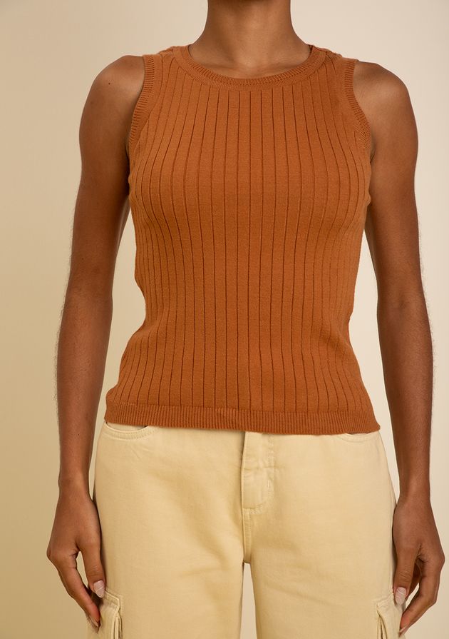Regata Zinco Ajustada Decote Careca Padrão Marrom