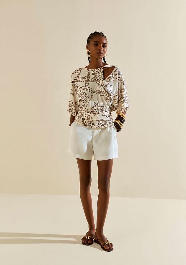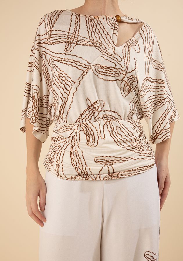 Blusa Morena Rosa Ajustada Decote Careca Manga Curta Padrão Off White