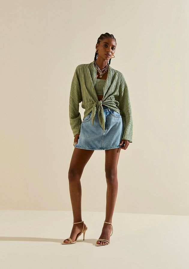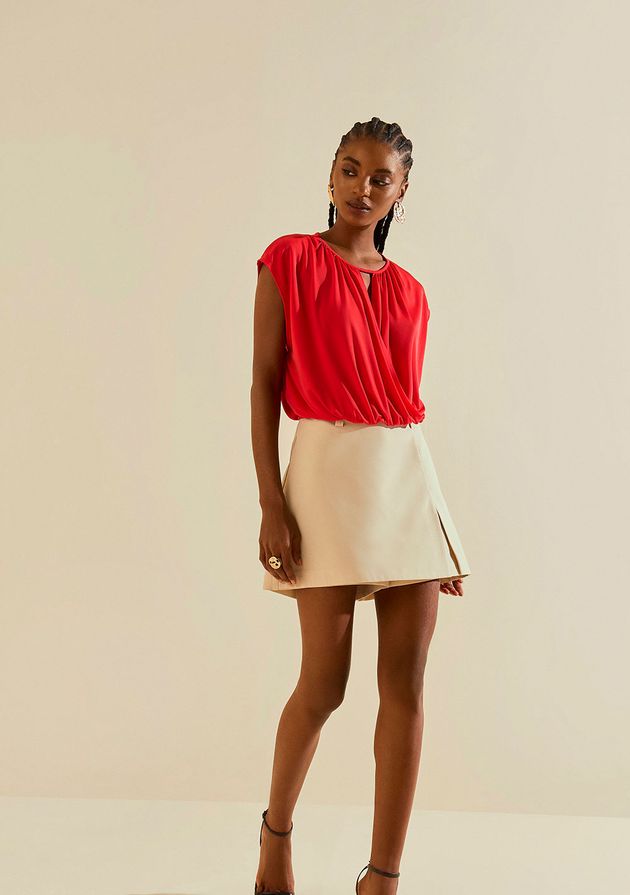 TamanhoGAdicionar à sacolaBlusa Morena Rosa Ajustada Decote Transpassado Manga 3 Quartos Cropped Vermelho