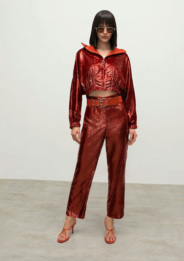 Calca Iódice Cenoura Cós Alto Com Pence Laranja