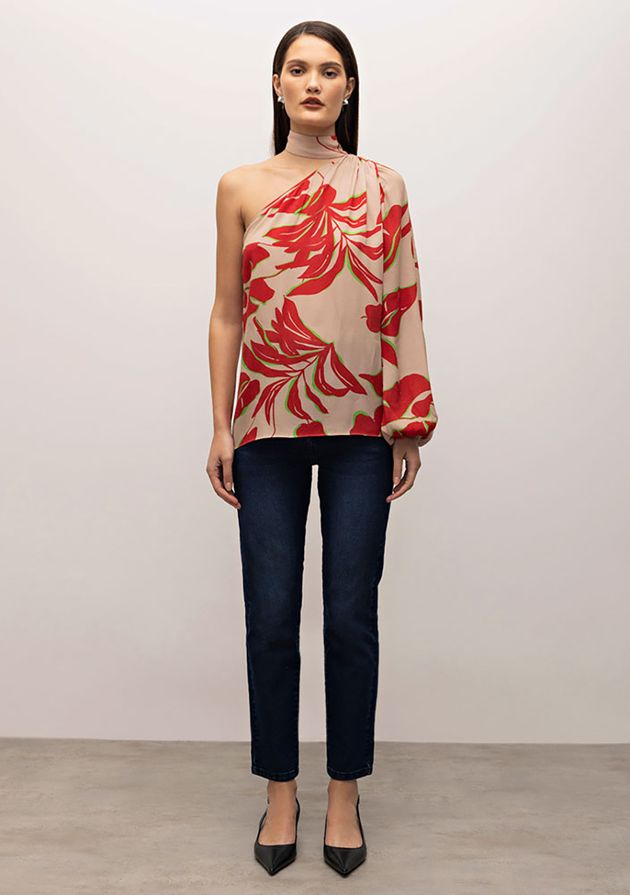 Blusa Iódice Gola Alta Manga Longa Com Franzido Bege