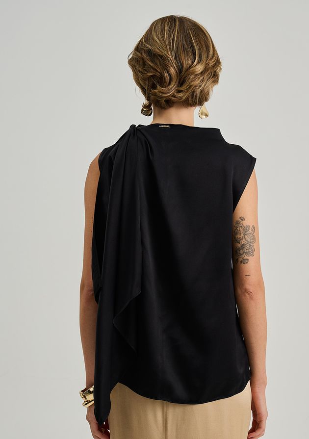 Blusa Iódice Solta Decote V Manga Curta Cropped Off White