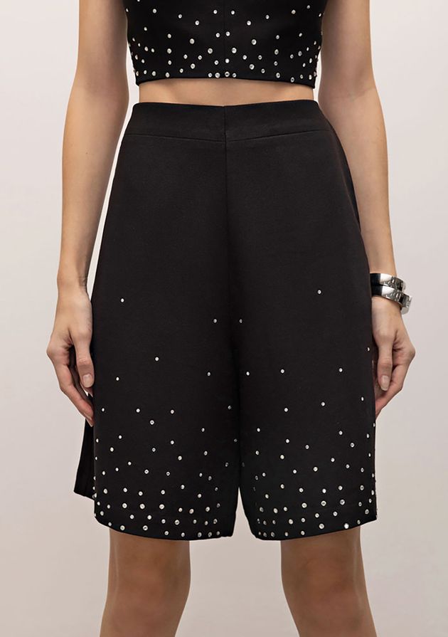 Bermuda Iódice Evasê Bordado Industrial Preto