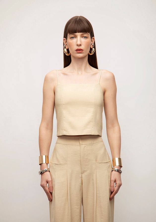 Blusa Iódice Ajustada Decote Careca Manga Curta Padrão Bege