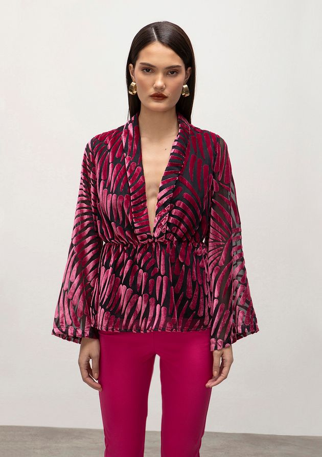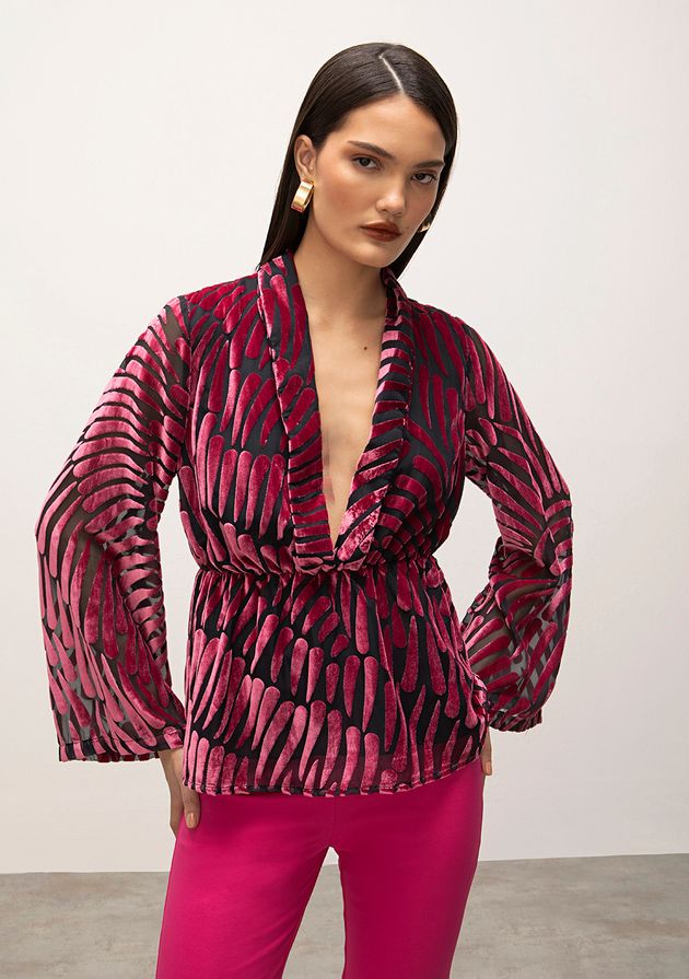 Blusa Iódice Decote V Manga Longa Detalhe Elástico Pink
