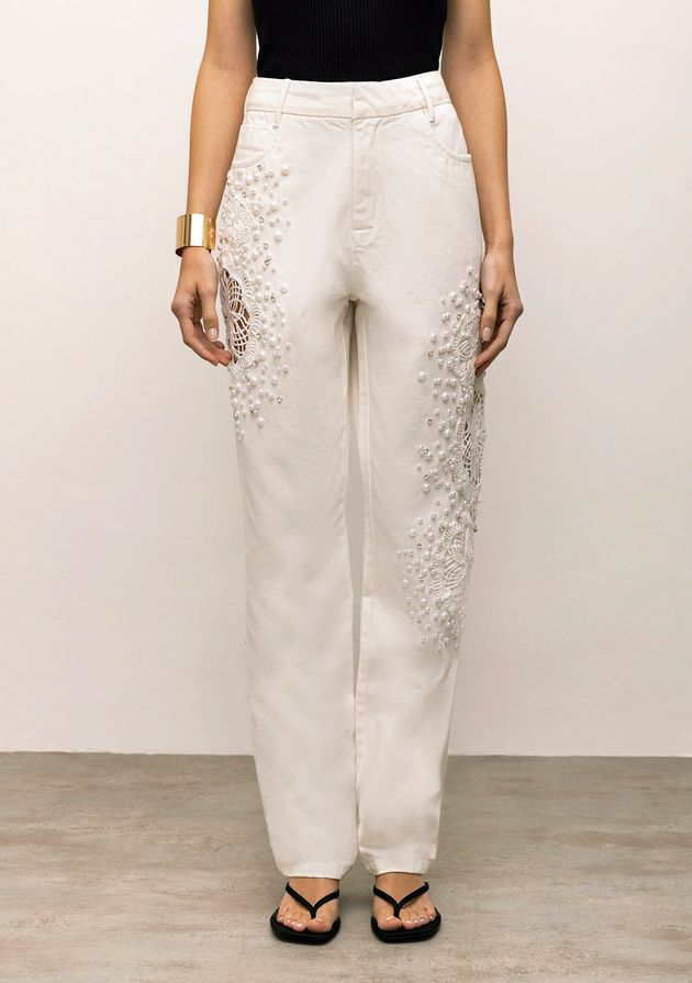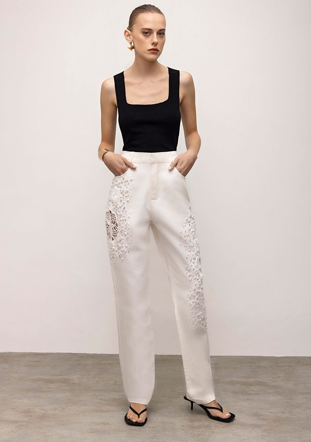 Calça Iódice Slim Cós Alto Alfaiataria Off White