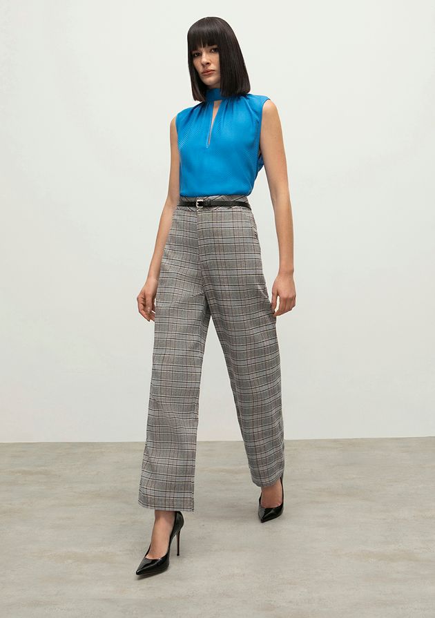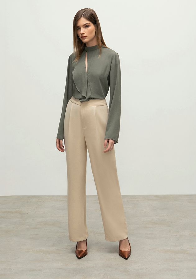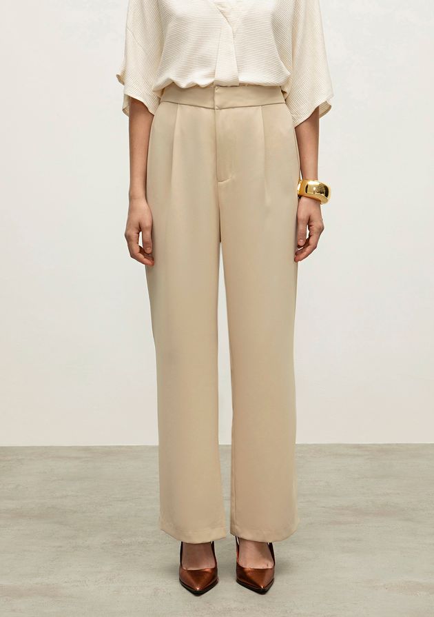 Calca Iódice Reta Cós Alto Com Pregas Bege