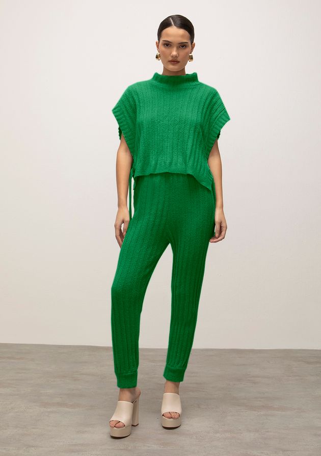 Calca Iódice Cenoura Cós Alto Punho Na Barra Verde