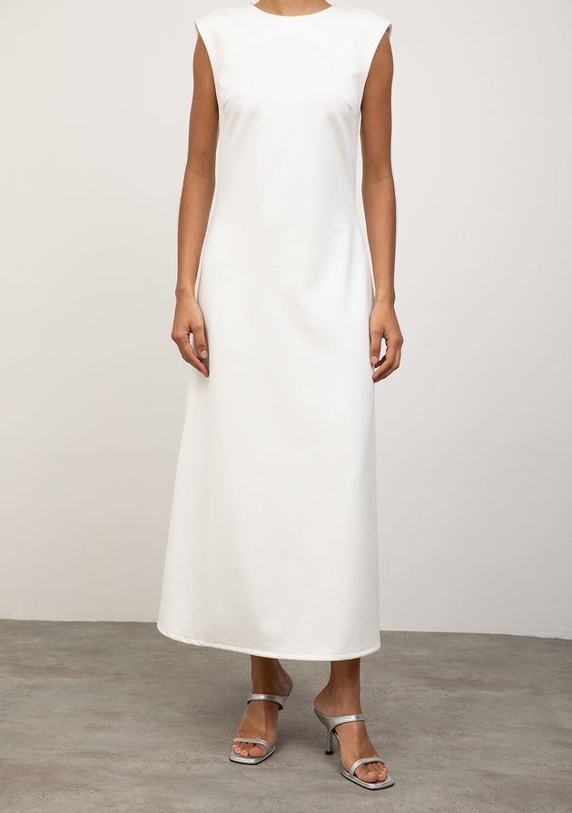 Vestido Iódice Ajustado Decote Careca Sem Manga Midi Off White