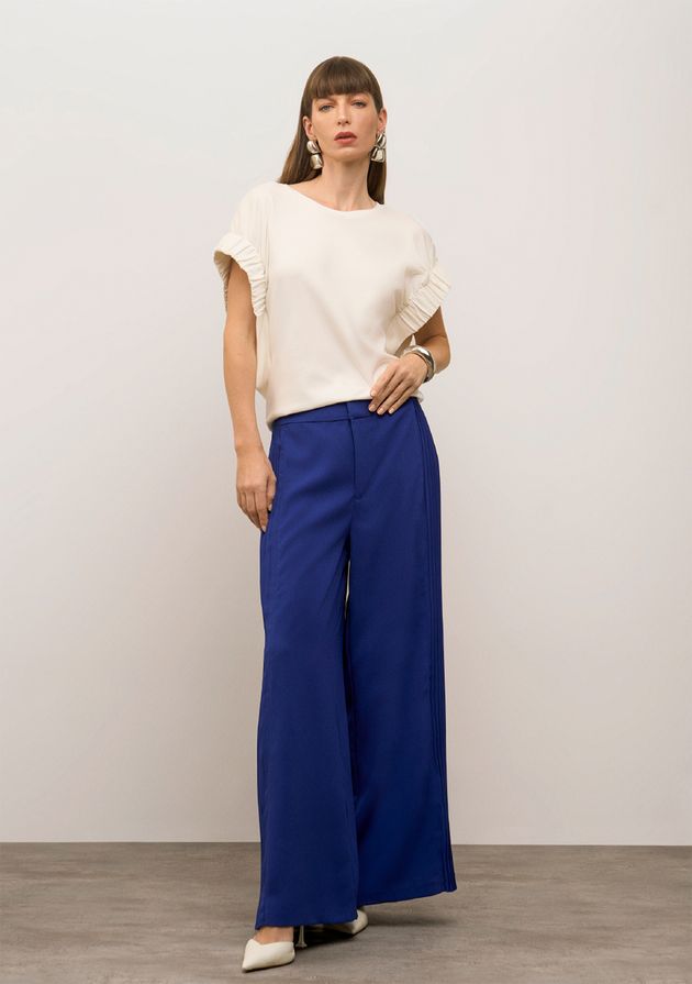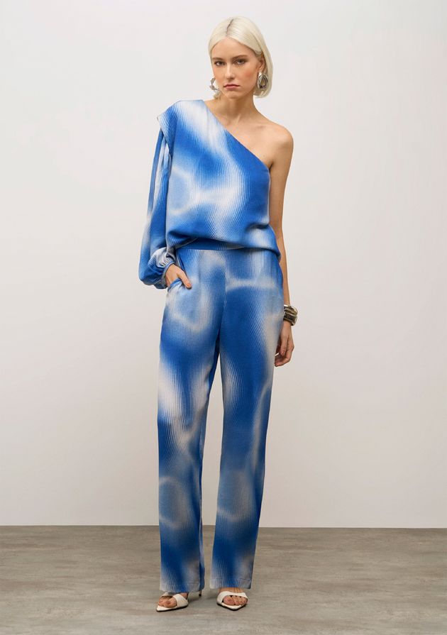 Blusa Iódice Solta Um Ombro Só Manga Longa Padrão Azul