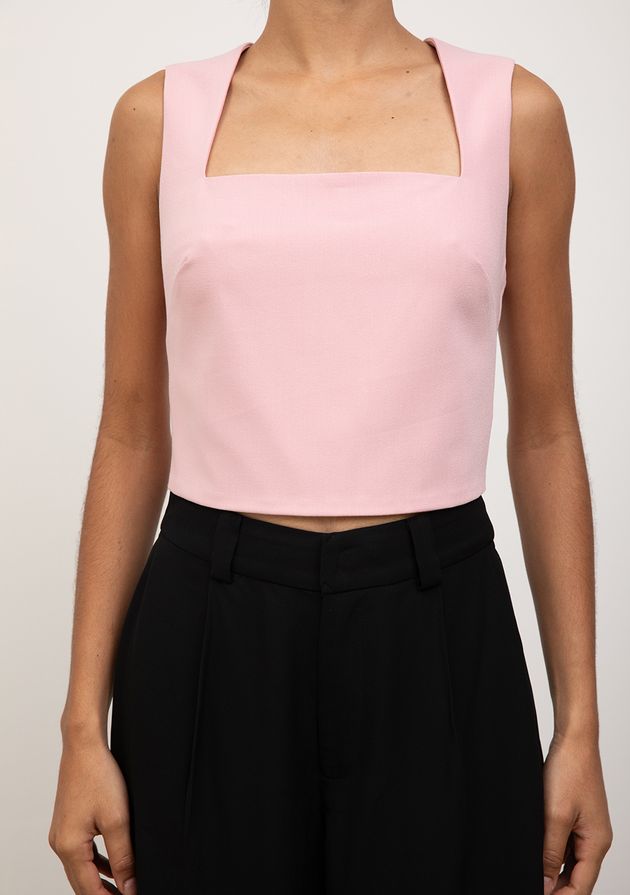 Regata Iódice Ajustada Decote Quadrado Cropped Rosa