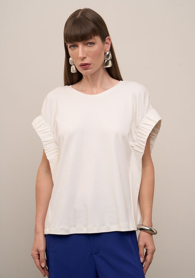 Camiseta Iódice Solta Decote Careca Manga Curta Padrão Off White