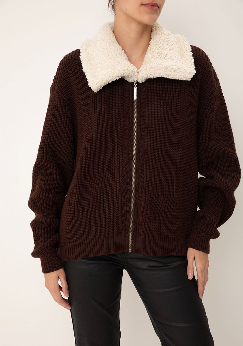 Jaqueta Maria.Valentina Solta Manga Longa Padrão Marrom