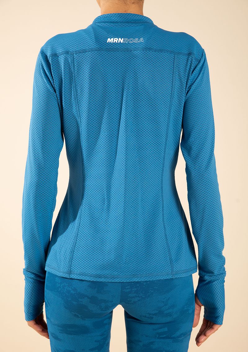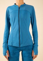 Jaqueta Morena Rosa Ajustada Manga Longa Padrão Azul
