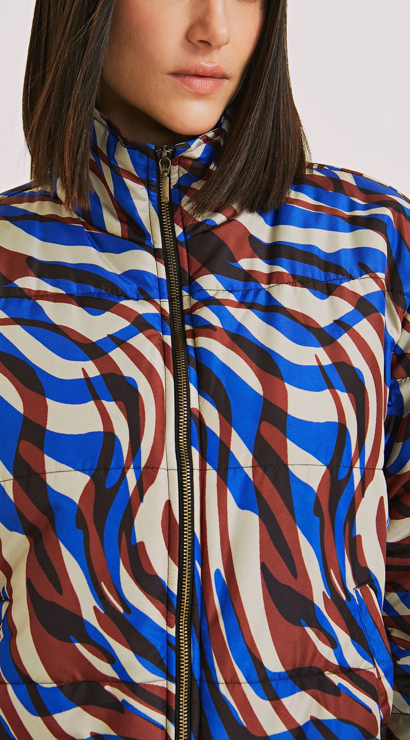 Jaqueta clássica detalhe regulador. Essa jaqueta clássica com detalhe regulador é a escolha certa para você que busca um estilo versátil e moderno. Feita em tactel suave e confortável, ela vem com uma estampa Zebra exclusiva que irá tornar qualquer look mais descolado. Além disso, sua modelagem puffer é ideal para dias frios, garantindo um toque de elegância e conforto ao mesmo tempo.