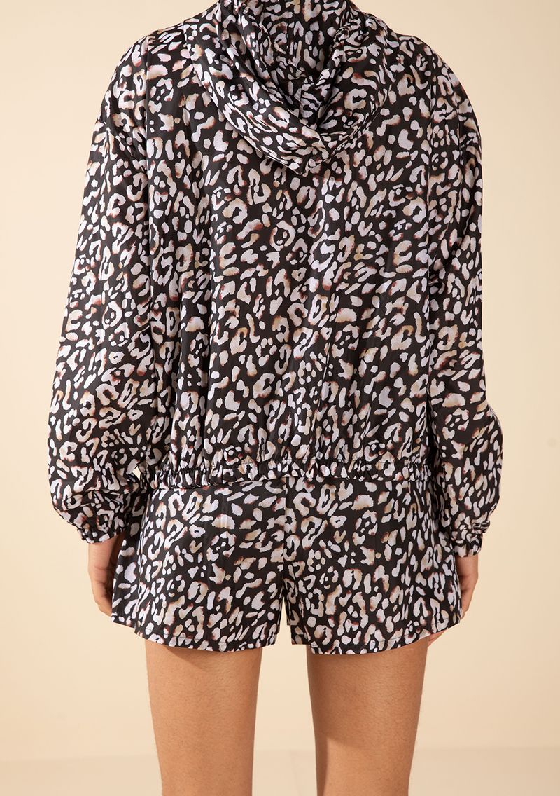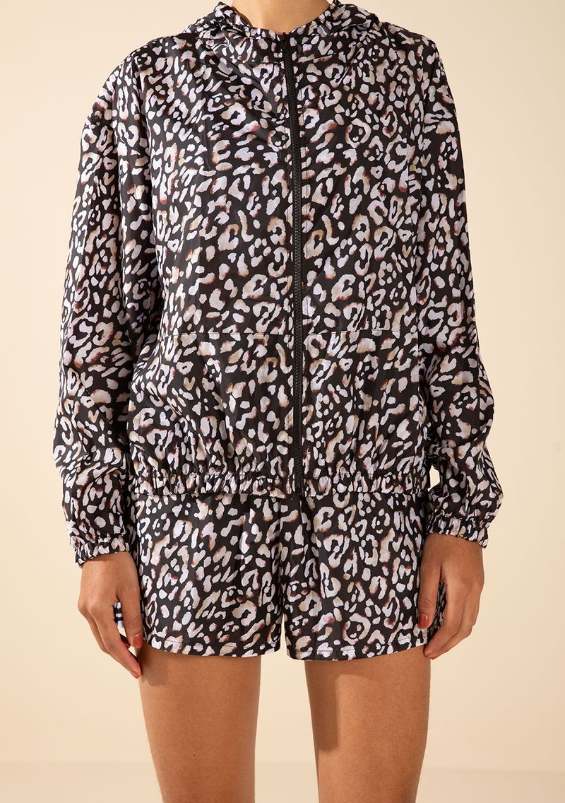 Jaqueta Morena Rosa Solta Manga Longa Padrão Preto