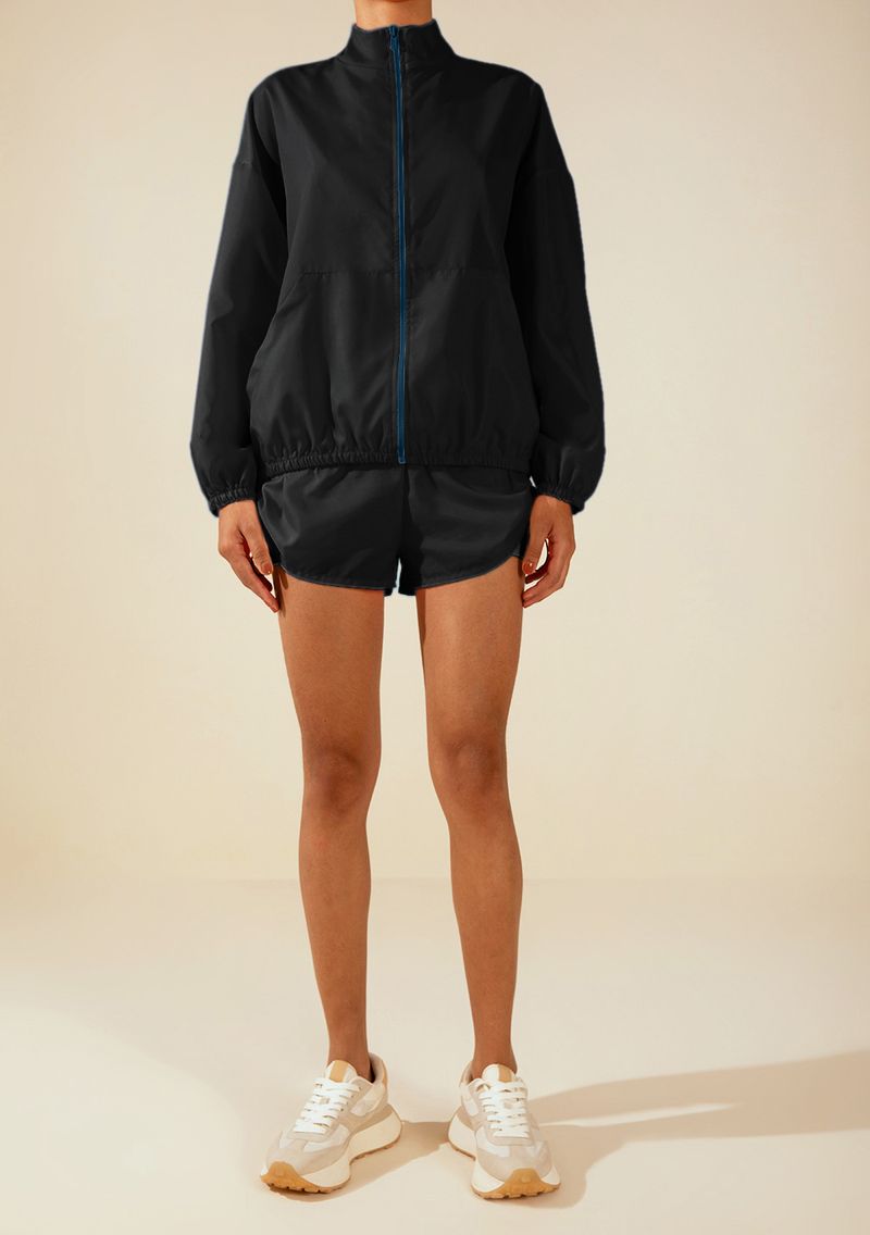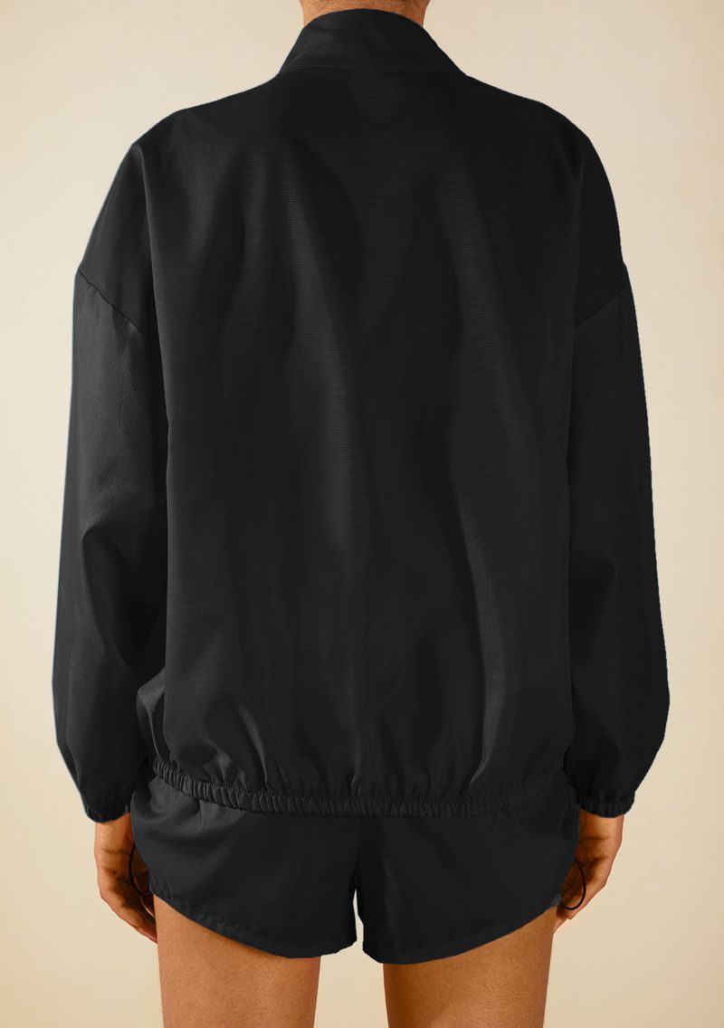 Jaqueta Morena Rosa Solta Manga Longa Padrão Preto