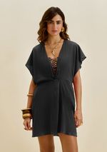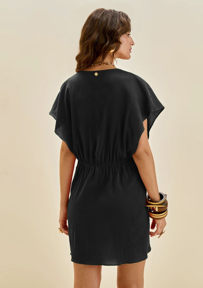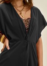 Kaftan Morena Rosa Solto Manga 3 Quartos Padrão Preto