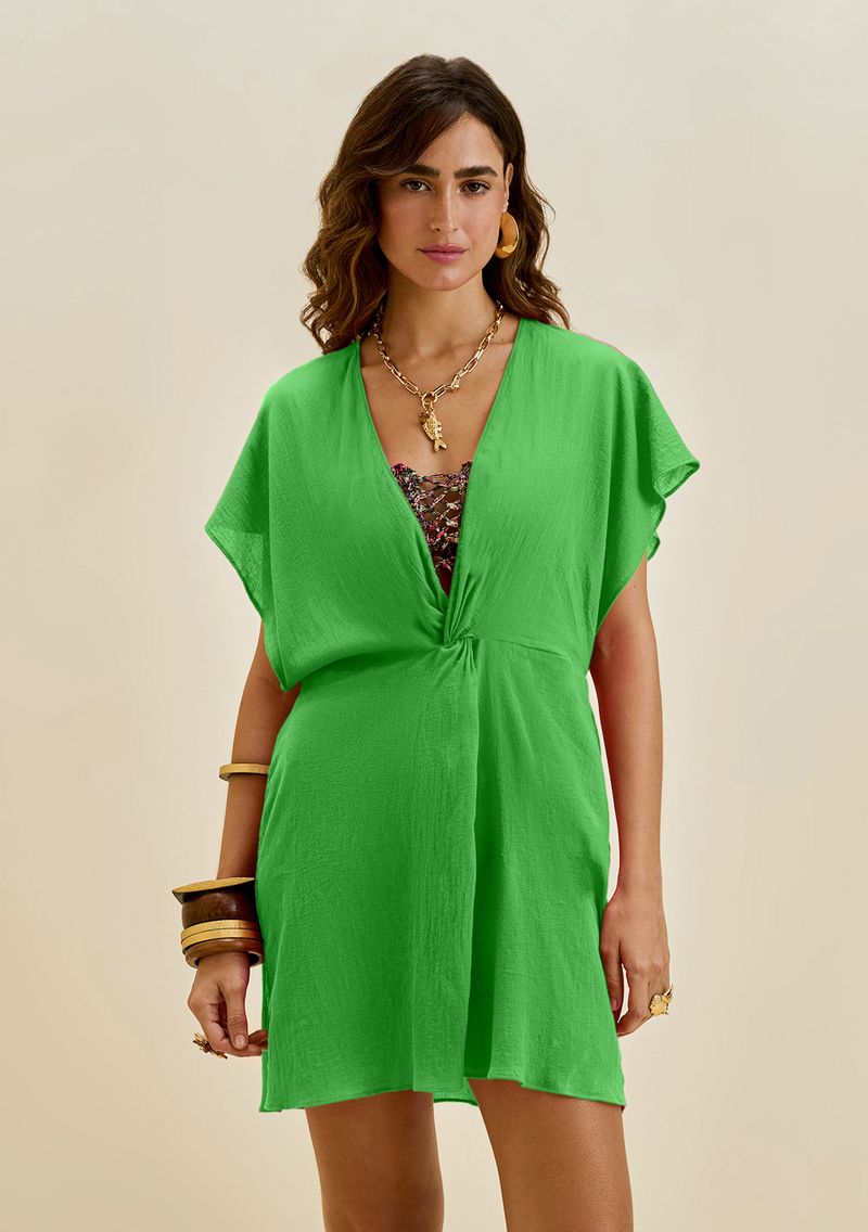 Kaftan Morena Rosa Solto Manga 3 Quartos Padrão Verde