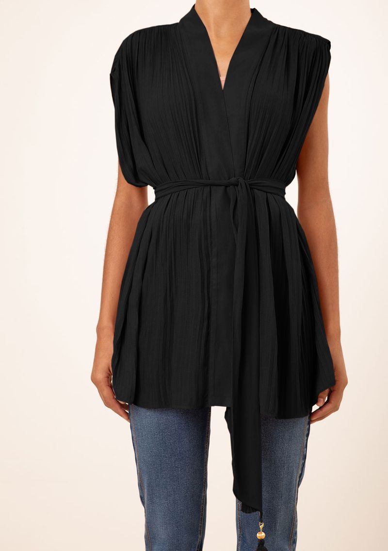 Kimono Maria.Valentina Solto Manga Curta Alongado Preto