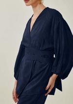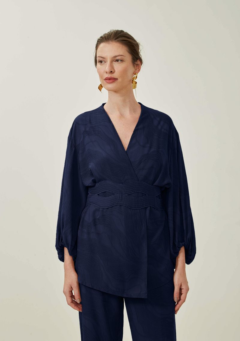 Kimono Maria.Valentina Solto Manga Longa Alongado Azul Escuro