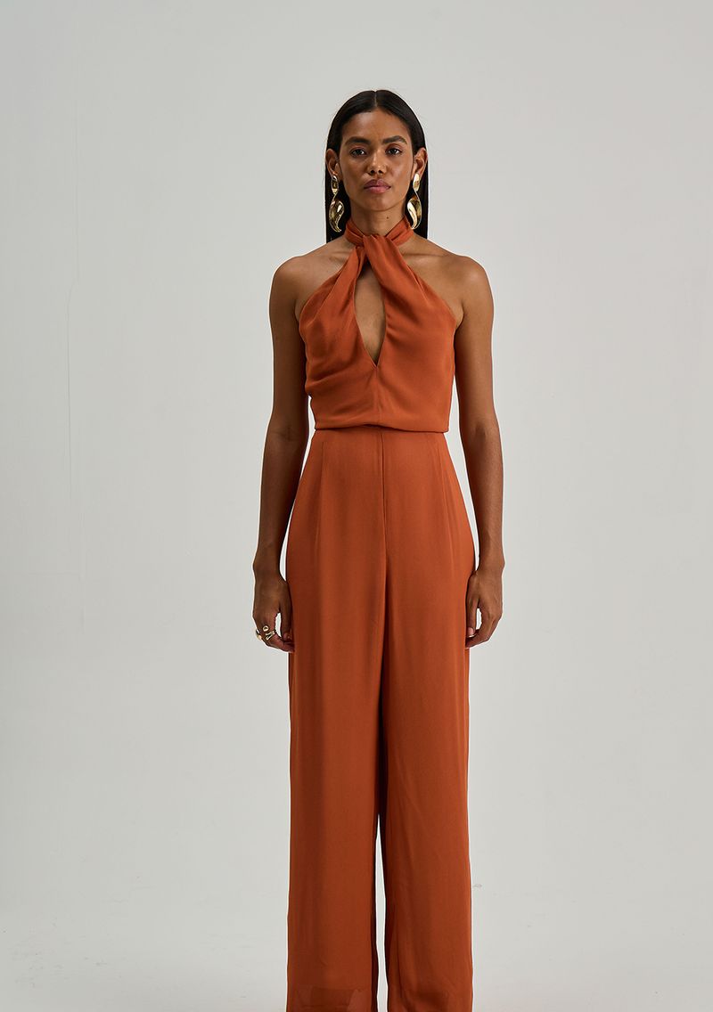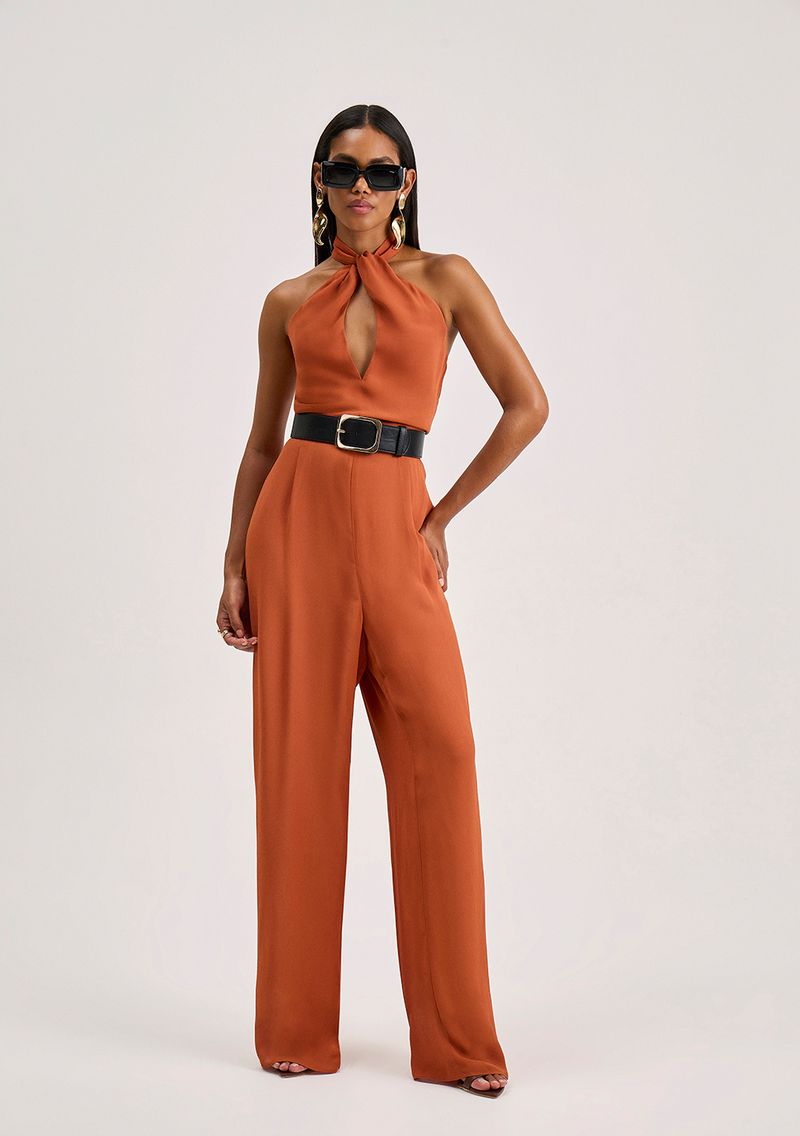 OUTLETFemininoRoupasAlfaiatariaMacacões e MacaquinhosMacacão Iódice Ajustado Gola Alta Sem Manga Longo Bege