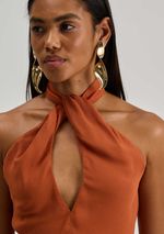 Macacão Iódice Ajustado Gola Alta Sem Manga Longo Bege