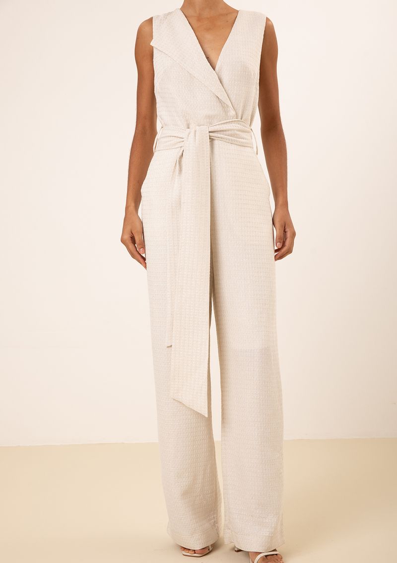 Macacão Maria.Valentina Ajustado Decote V Sem Manga Longo Off White